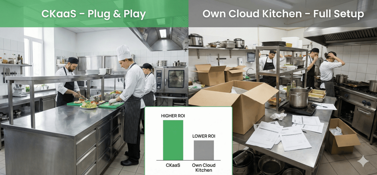 14) ROI discipline: growth spend must be evaluated against margin, not orders. Orders are not ROI. Profit is ROI. CKaaS aligns growth by forcing the business to track contribution margin impact, not vanity spikes. Use the growth lens: Marketing Spend vs ROI in Cloud Kitchens.